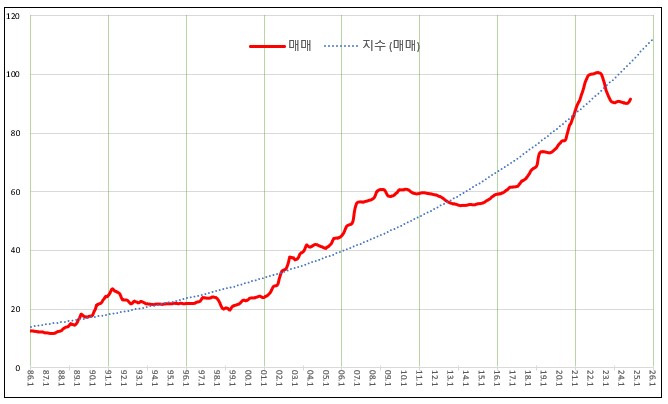 장기적으로 집값 추이를 그려보면 일직선으로 상승하지 않는다. 복리효과를 누리는 것처럼 갈수록 더 많이 ...