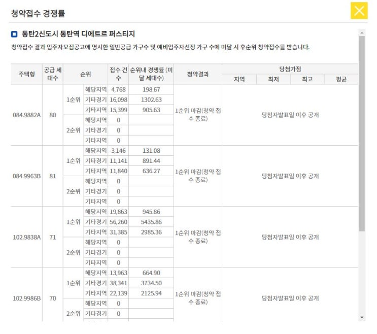 어제 동탄 디에트로 특공 경쟁률에서 오늘 1순위 경쟁률을 예상해 보았습니다. 가점이 낮은 청약자도 1순위...