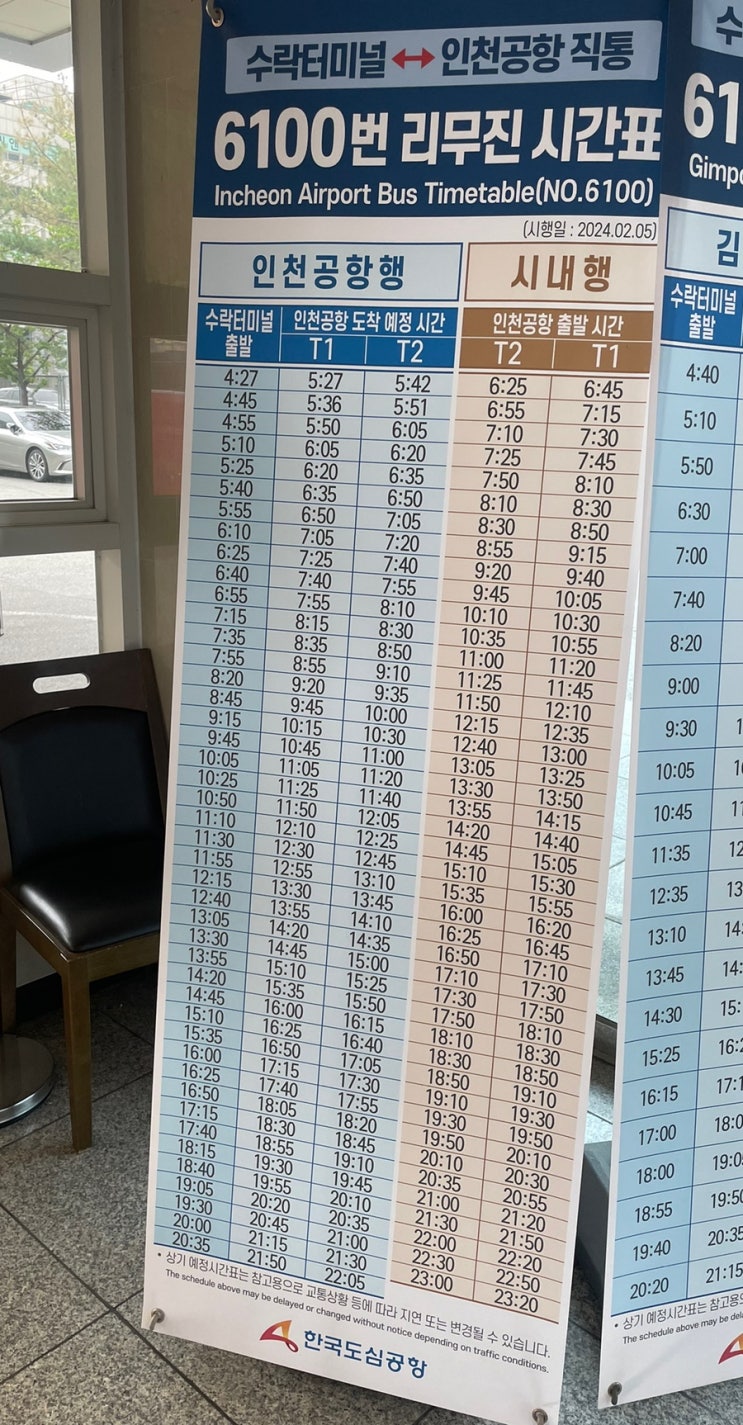 수락산역 수락터미널 6100 6101 공항버스 리무진 시간표 (2024.04.16)