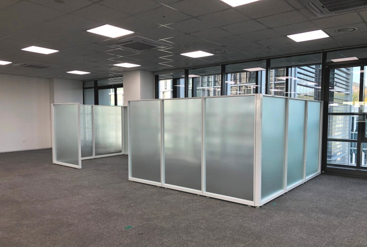 사무실 칸막이 유리파티션 & 무프레임 양방향 여닫이중문