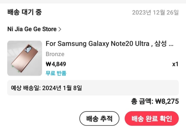노트20 울트라 백커버 파손으로 (생각보다 내구성이 약함) 수리비가 8만정도 나온다고한다. 하지만 알리직...