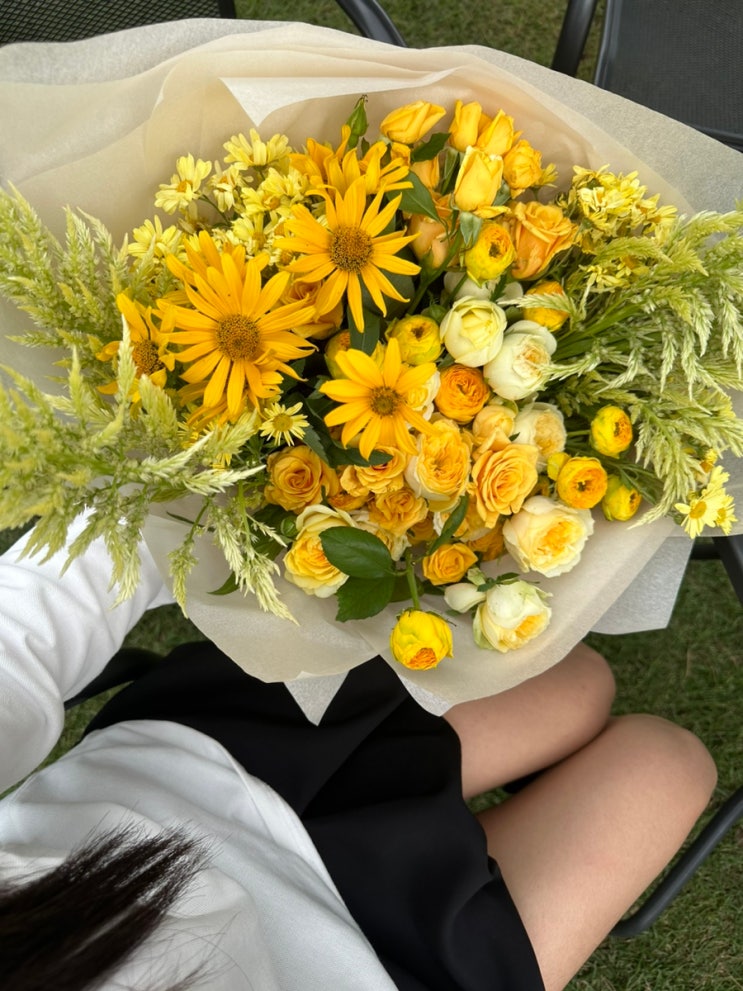친구 생일 겸 오랜만에 만든 꽃다발. 오랜만에 만드니까 3-4번은 묶었다 풀었다 반복. 손이 큰 편이라 7다...