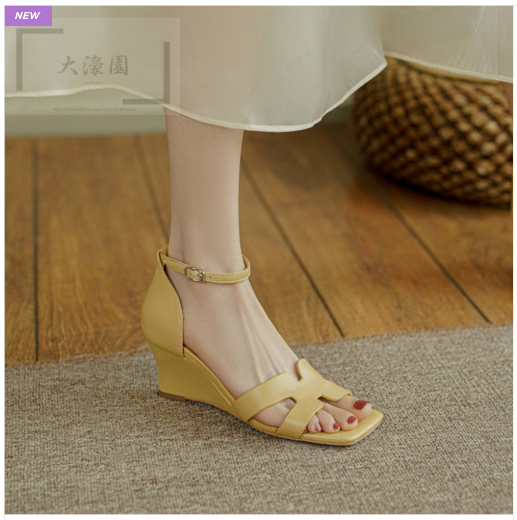 [대호원] [6cm] H 스트랩 웨지 힐 양가죽 수입 보세 편한 명품 스타일 고급 샌들 옐로우 화이트 2컬러