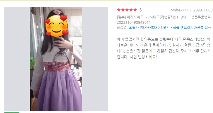 24년 11월 동탄한복대여 고객님 사진후기입니다.네이버 스마트 스토어 아라한복 각종행사 결혼식 돌잔치 하객 혼주 칠순 고희연 여자 남자 여아 남아 가능합니다.