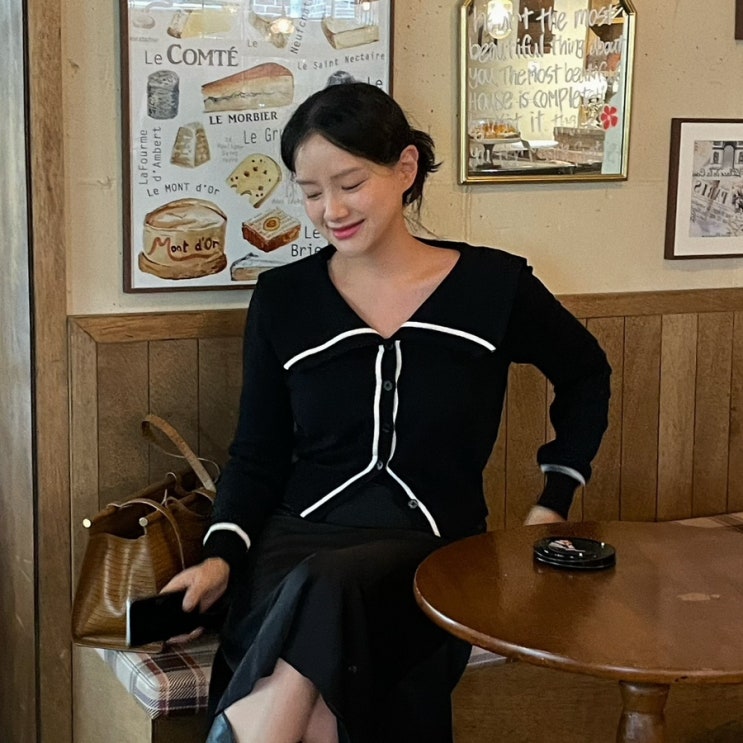 에브모우 여자 데일리 세일러 배색 가디건 후기