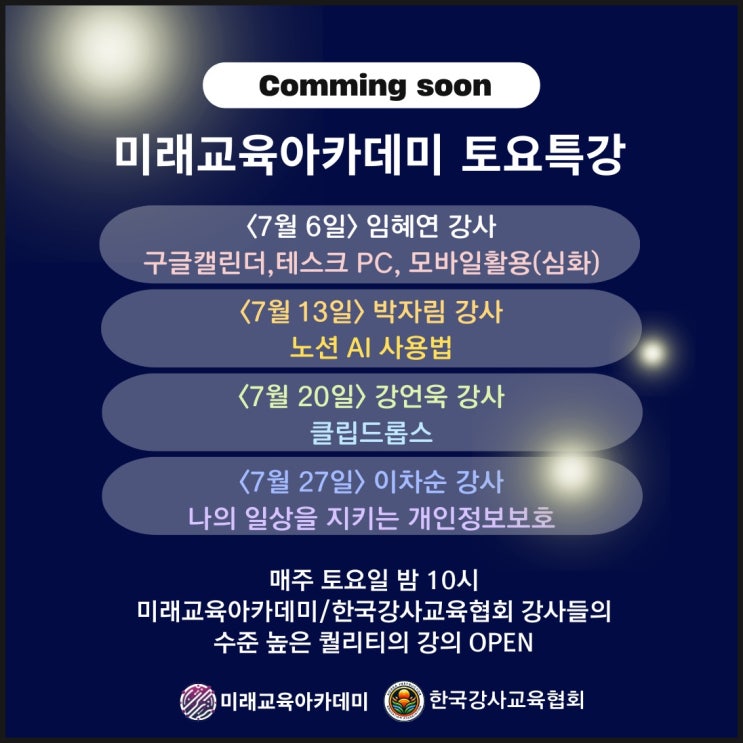 미래교육아카데미 한국강사교육협회 챗GPT 강사진 / 7월 특강 챗지피티 코파일럿 생성형AI 노션 구글