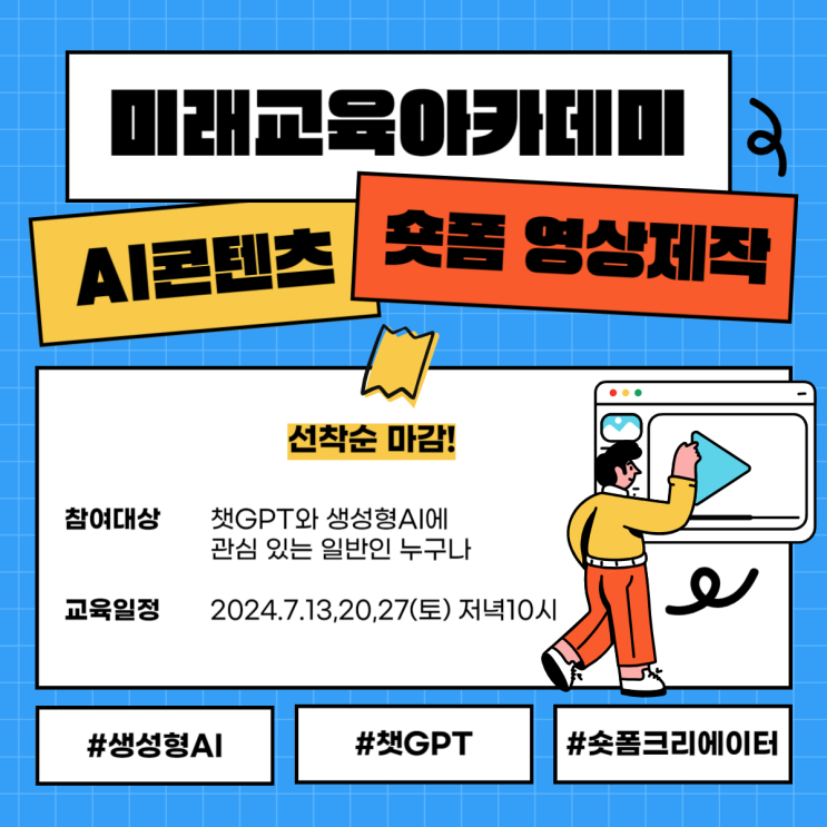 챗GPT 생성형AI 활용 숏폼 콘텐츠 영상 제작 (인공지능 초보자 가능) / 챗지피티 전문강사진 교육 안...