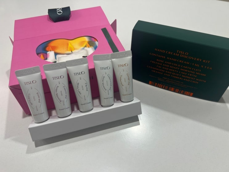 두근두근 선물이 도착했다. 티슬로 기프트 세트 TISLO 예쁜 분홍상자에 촛불그림이 빼꼼하고 있다. 티...