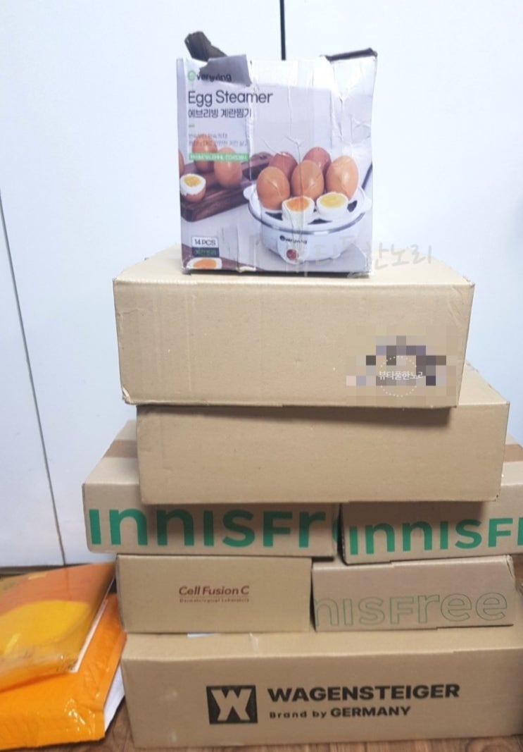 @난이거바꿔왔잖소 @다들무사히왔소?! 계란찜기는 아주 구깃구깃 저대로 ㅋㅋㅋ찢어지고 박스다뚫리고 저래...