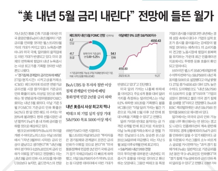 23.12.5 금값 최고치, 미국 물가하락, 금리 인하 기대