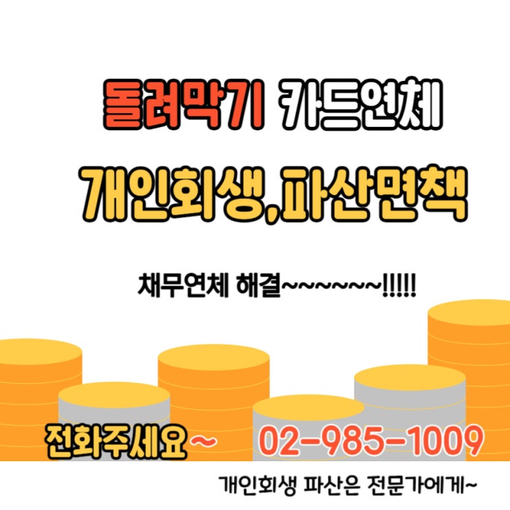 카드연체, 채무연체, 이자연체, 신용불량 등으로 개인회생이나 파산에 대한 고민이 있으신 분은 아래 연락...