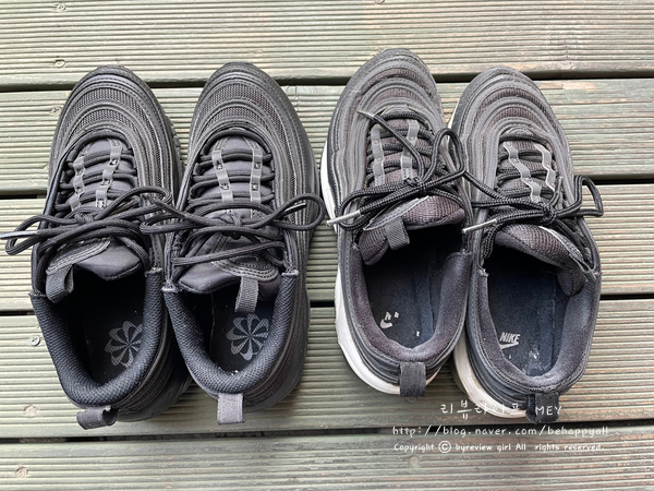 나이키 에어맥스97 모델입니다 올블랙 색상 지금 저는 캘리포니아 모델을 신고 있습니다 에어맥스를 처음 ...