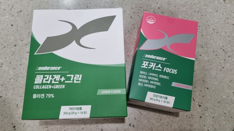 운동 전후 활력을 위해 섭취하는 엑스인듀어런스 콜라겐+그린 / 포커스