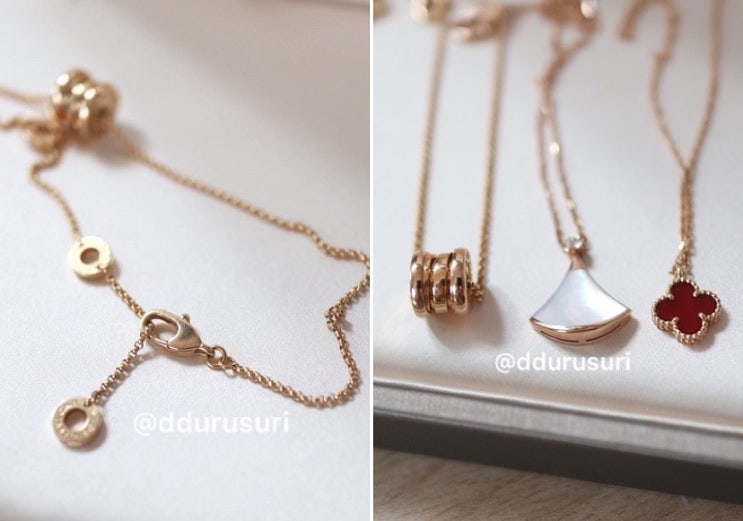 중증 쿨톤병이라 목걸이는 화이트 골드&실버 뿐이었는데, 반클 스윗 오닉스 귀걸이에 맞춰서 골드 목걸...