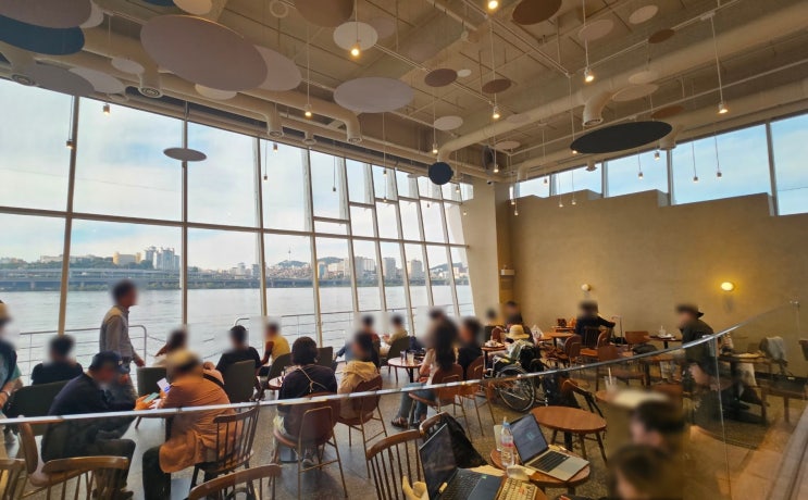 잠원 한강뷰 카페 스타벅스 서울웨이브 아트센터점, 잠원 서울웨이브 한강 해치카 정거장 뒤 한강 잠원공원...