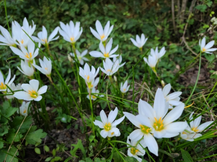나도 샤프란이 활짝 피었다. 하얀 꽃무리가 보는 눈을 즐겁게 한다. 긴 무더위에 구근들이 무르지 않았나 ...