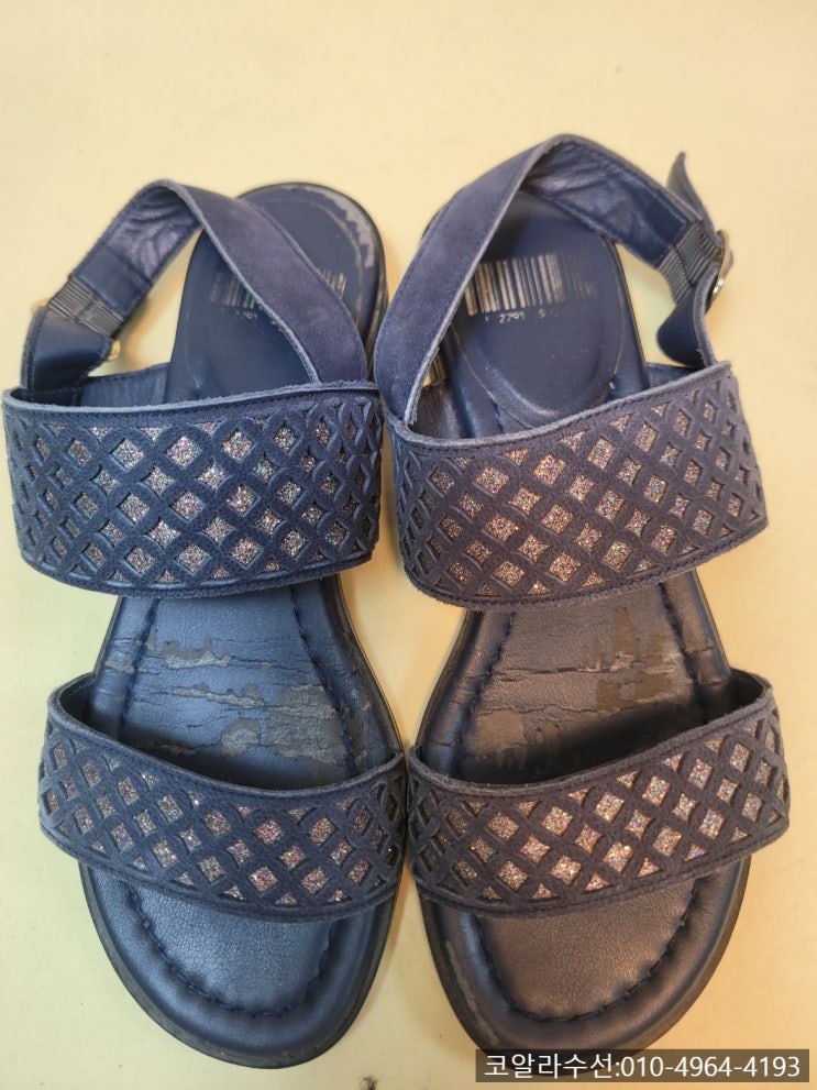 여성샌들 레샤 수선하였습니다!! 안녕하세요 코알라수선입니다, 이번에는 여성샌들이 들어왔는데 바닥부분...