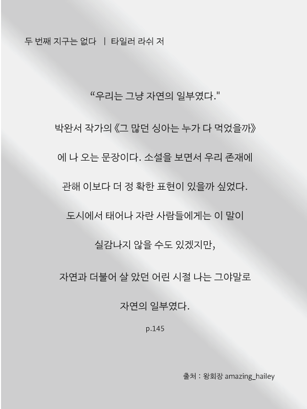 [독후감] "두 번째 지구는 없다_타일러 라쉬 작가님"