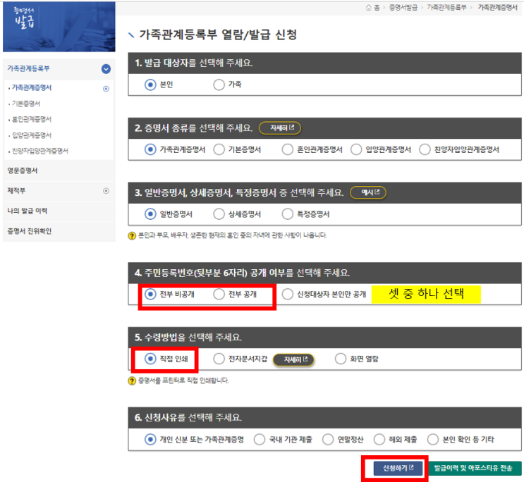 대한민국법원 전자가족관계등록시스템에서 가족관계증명서 온라인 무료 출력(프린트) 방법