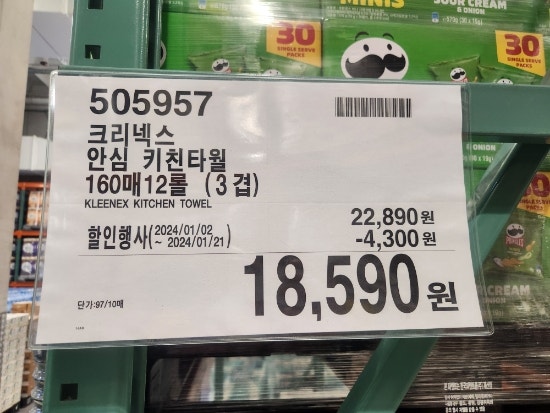 키친타월을 사야지 했는데, 제가 다니는 코스트코 지점에서 크리넥스 안심3겹 키친타월을 할인하고 있네요....