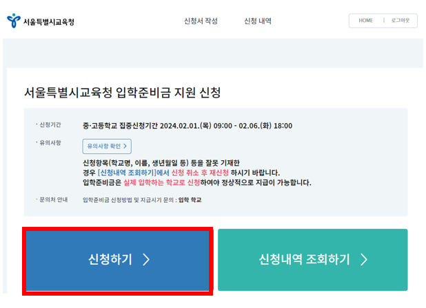 아이가 이번에 중학교에 입학하는데, 서울특별시교육청 입학준비금 30만원 신청하는 내용에 대해서 작성해 ...