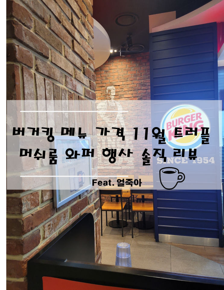 버거킹 메뉴 가격 11월 트러플 머쉬룸 와퍼 행사 솔직 리뷰 안녕하세요 이웃님들 얼죽아 입니다 오늘은 버...
