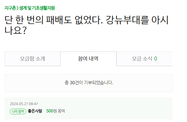 오늘 기부는 강뉴부대~~~~