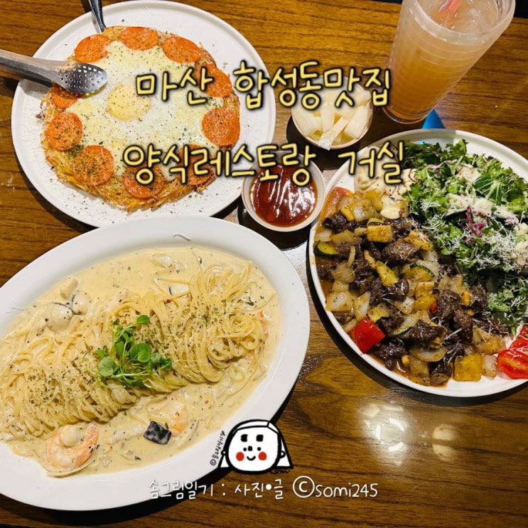 마산 합성동맛집 거실 _ 스테이크샐러드 파스타 뢰스티 가족외식