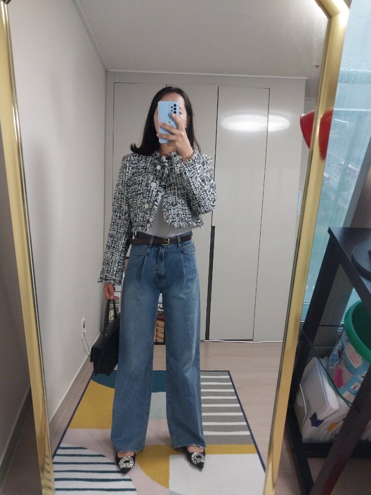 기다니던 러닝하이 트위드 자켓이 왔어용!! 보자마자 든 생각은 와~~~~~~~~~~~~~~~ 진짜 짧구나!!!! 제가 ...