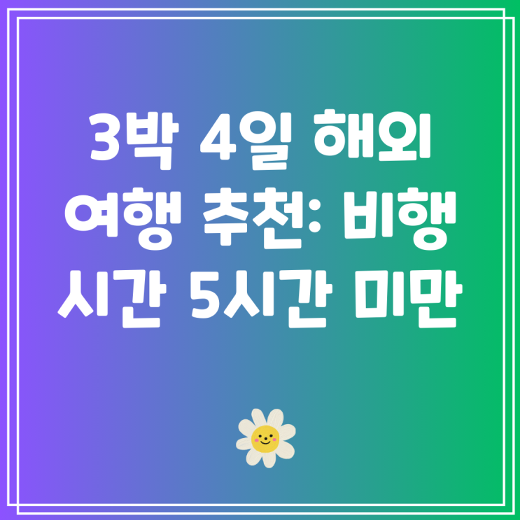 3박 4일 해외 여행 추천: 비행 시간 5시간 미만 여행 애호가 여러분! ✈️?? 이번 주말에 멋진 탈출...