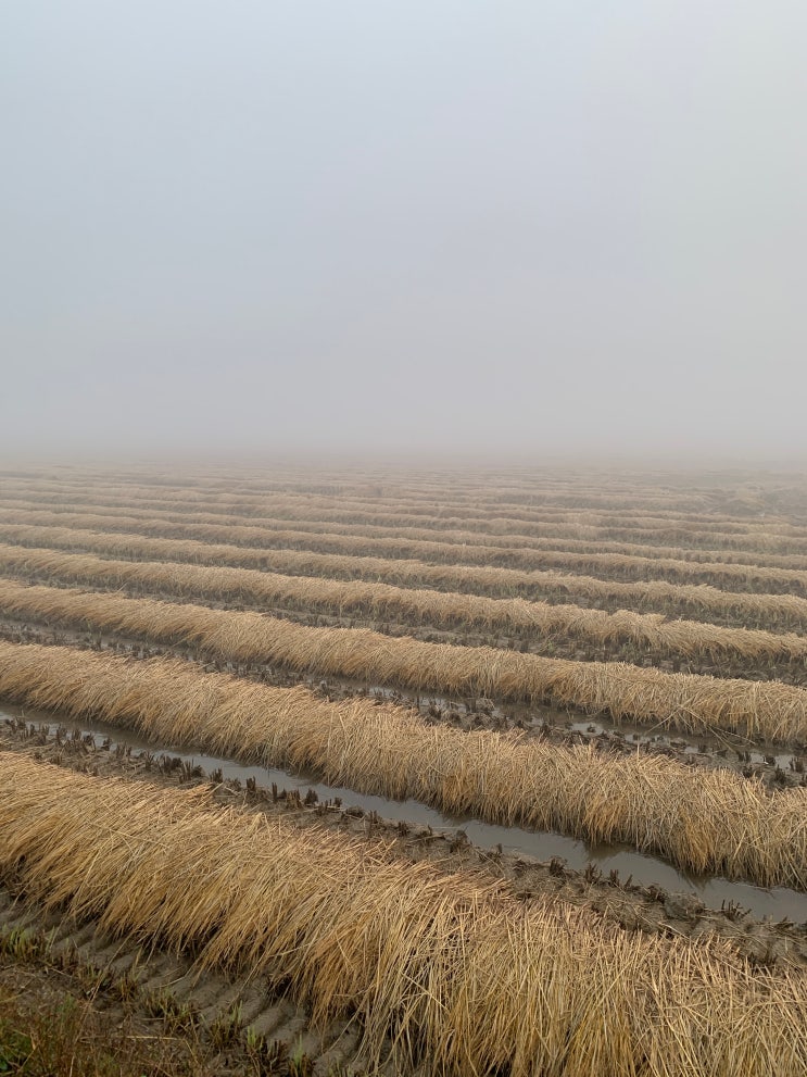 나흘전 아침산책길은 안개가 자욱했다 농로로 난 뚝방길 2주사이 벼베기를 마친 논엔 볏짚을 자르지않고 가...
