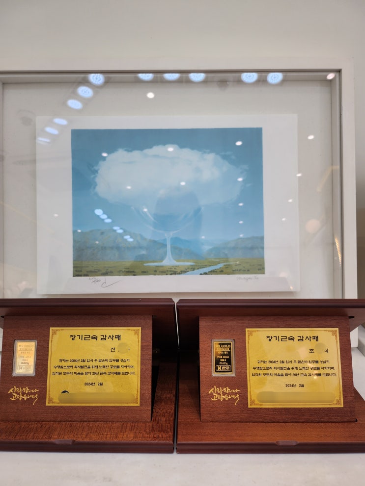 순금골드바 기업상패 제작해드렸어요:) 근속기념 감사패 너무 근사하죠~!! 감사패 내용이 들어가는 부분에...