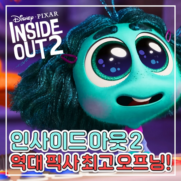 어제(12일)부터 국내 상영을 시작한 픽사의 신작 영화 <인사이드 아웃 2>(2024)가 역대 픽사 스튜디...