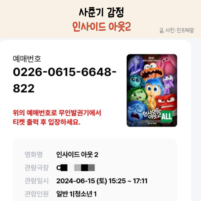 인사이드아웃2 가족영화 사춘기감정 관람평