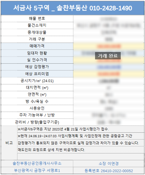 서금사5구역 오늘의 매물과 소식 전해드립니다.
