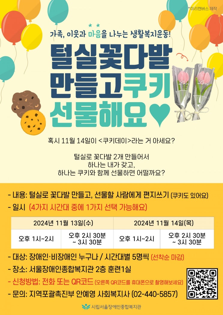 (접수 마감) '쿠키데이' 털실 꽃다발 만들고 쿠키 선물해요♥ | 가족, 이웃과 마음을 나누는 생활복지운동 | 털실로 꽃다발 만들고, 선물할 사람에게 편지쓰기 | 복지관 프로그램