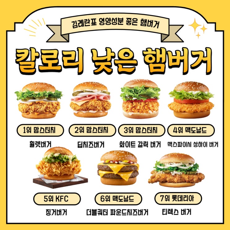 칼로리 낮은 햄버거 영양성분 좋은 순위