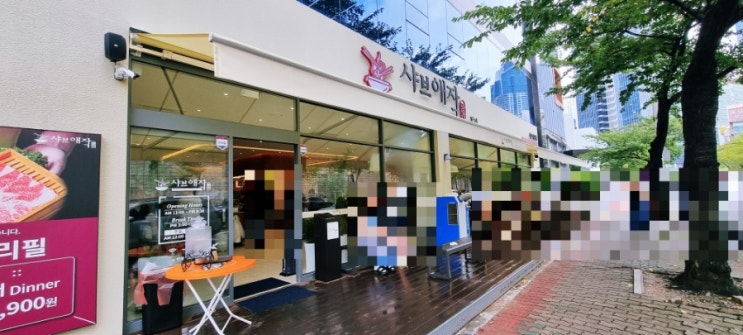 요즘 인스타에 계~~~~~속 올라오는 샤브애작 평일 11시30분에 방문했을때 만석이었다. 바깥에 대기 좌석이 ...