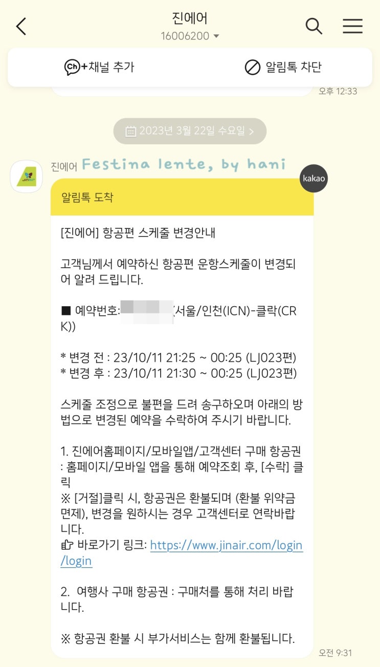 진에어 진마켓 특가 항공권 무료 환불 후기