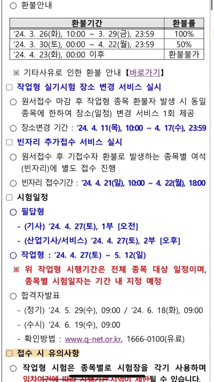 큐넷 정기기사 1회 실기 추가시험장 개설시각 안내 작업형 실기시험 장소변경 서비스 빈자리 추가 접수 서...