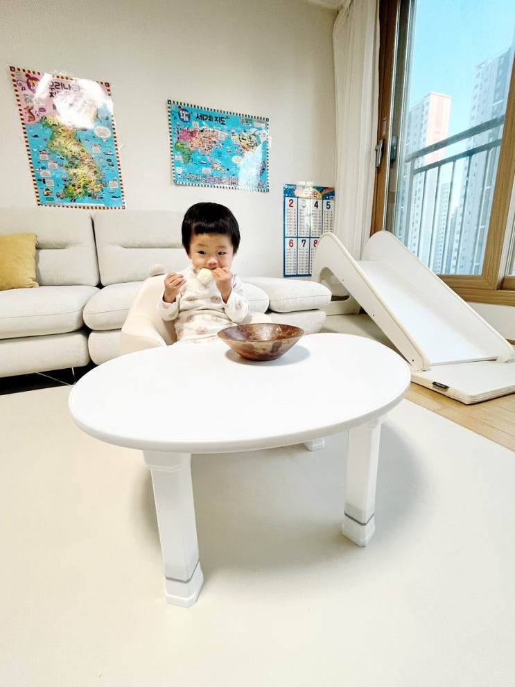 [내돈내산] 15개월 아기책상 코아코아 피넛책상사용 후기 아기한테 과자나 간식을 그릇에 주면 두고 먹을 ...