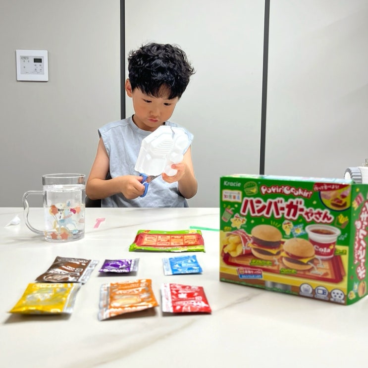 가루쿡 만들기 2탄 크라시에 해피 키친 햄버거 가루쿡 만들기 햄버거 만들 트레이를 각각 잘라 준비~ 차근...
