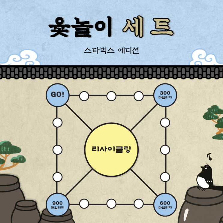 스타벅스 에디션 윷놀이 세트(미션음료 또는 미션MD 포함 3만원 이상 구매시 6천원에 구매 가능)