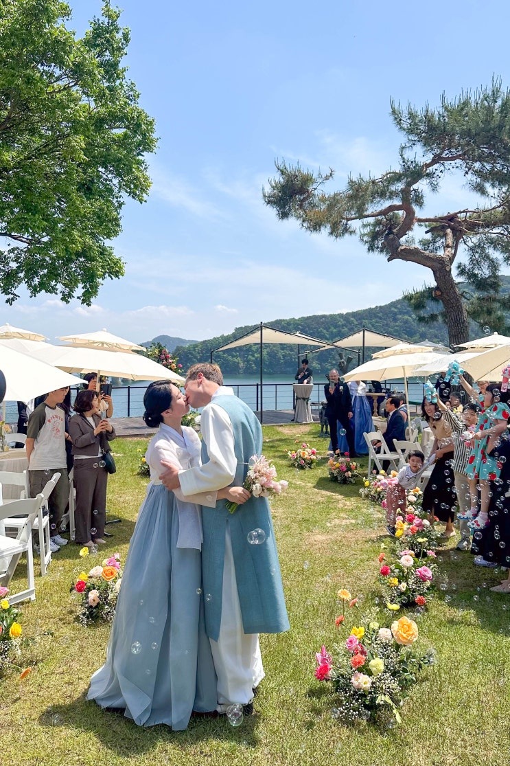 진주야외결혼식 달그리고강펜션 국제커플 섬꽃로망웨딩디렉팅+플라워데코