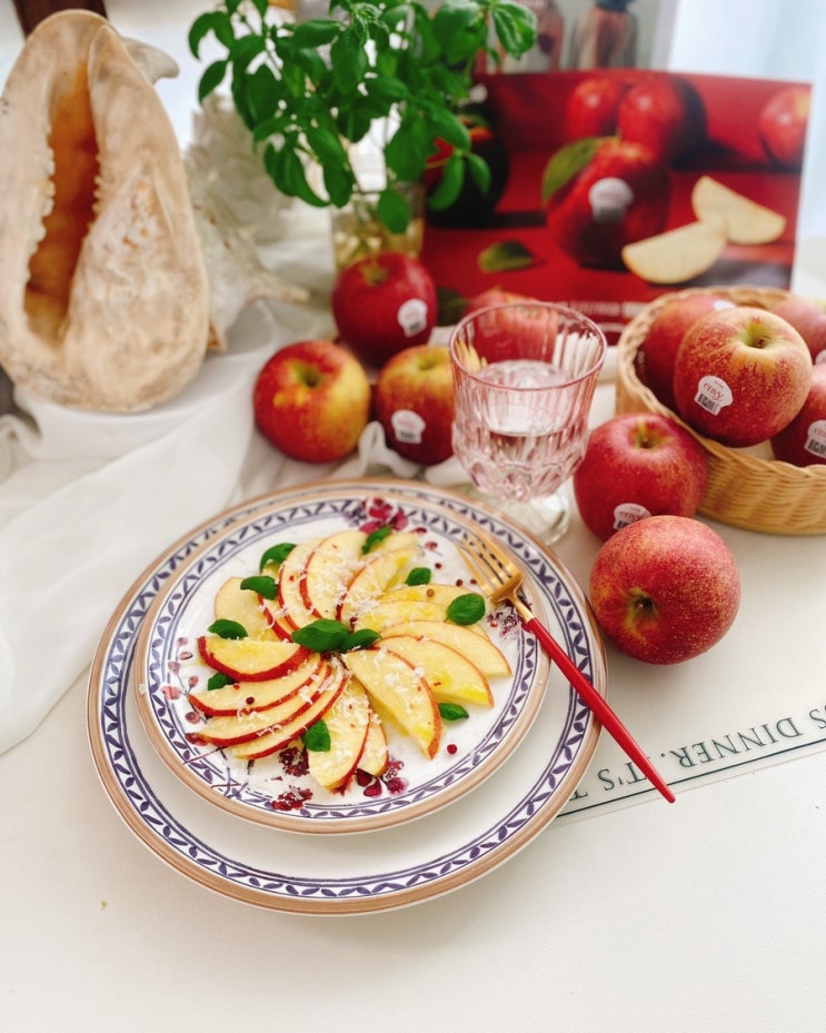 엔비사과 정품 종류 뜻 사과 샐러드 화이트발사믹 소스 아침식사대용 과일 플레이팅