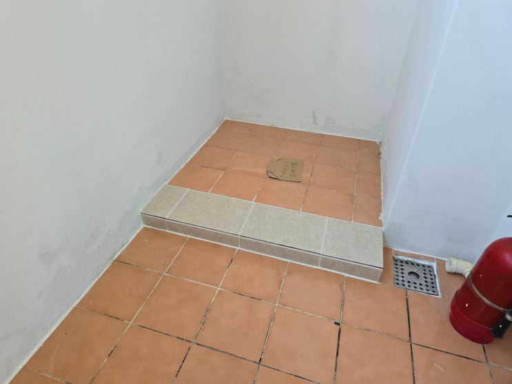 분당 베란다 세탁기 설치자리 단차 수평 평탄화 바닥 타일 시공 - 아름마을 효성