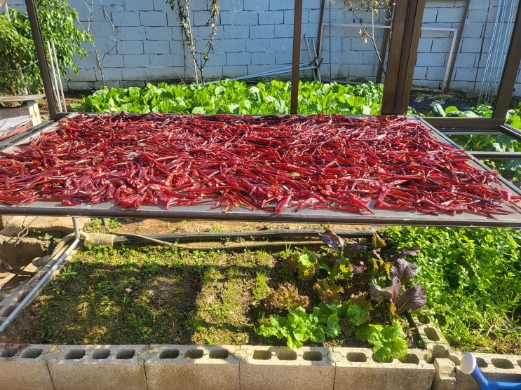 태양초의 마무리 작업 말린 태양초를 빻기 위해 봉지에 넣어 뒀던 고추를 꺼내어. 한 번 더 햇볕에 말려서 ...