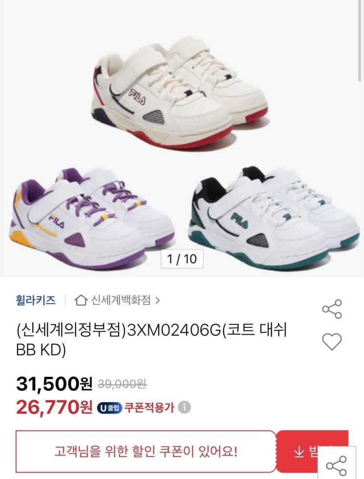 [핫딜] 휠라키즈 코트대쉬 운동화 26,770원(유클) 무배: 가성비 끝판왕? 장단점 비교분석