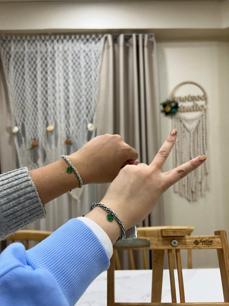 오늘 방문한 곳은 서울팔찌공방 마크라메팔찌공방 노트수스튜디오! 내가 좋아하는 네잎클로버팔찌가 있길래...