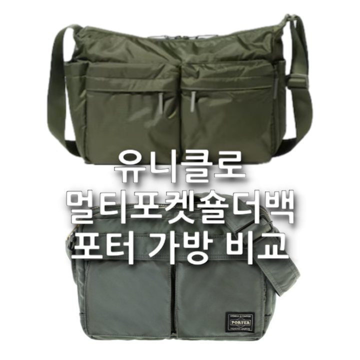 유니클로 멀티포켓 숄더백 올리브 & 블랙 실착 비교 | 포터맛 유니 포터 가방
